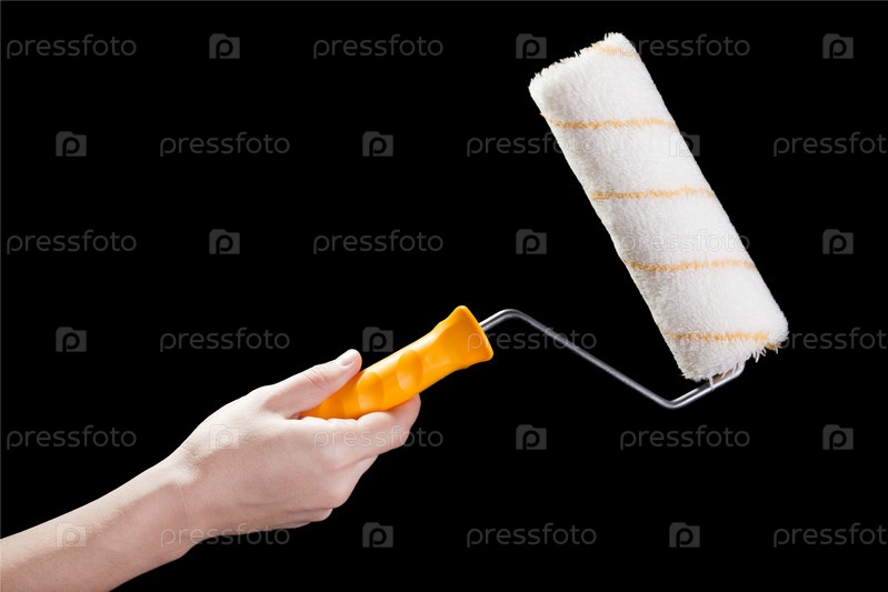 Валик для ремонта в руке. Изоляция на черном фоне