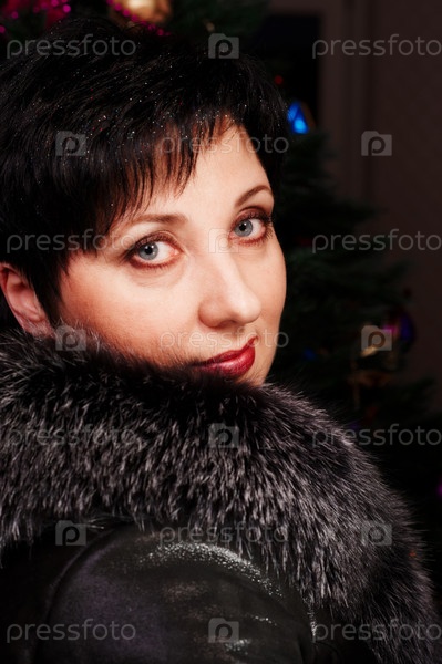 Женщина средних лет с голубыми глазами в шубе