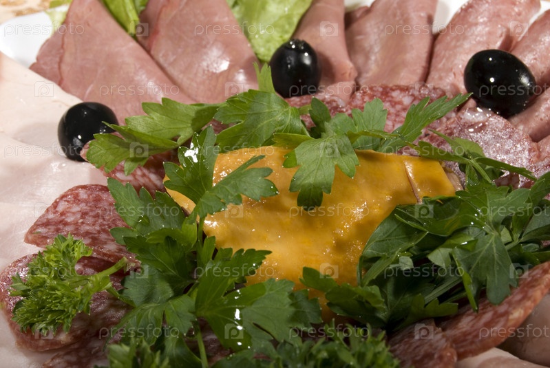 Закуска из мясных деликатесов и салата