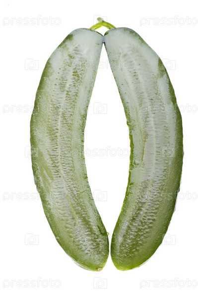 Разрезанный зеленый огурец на белом фоне