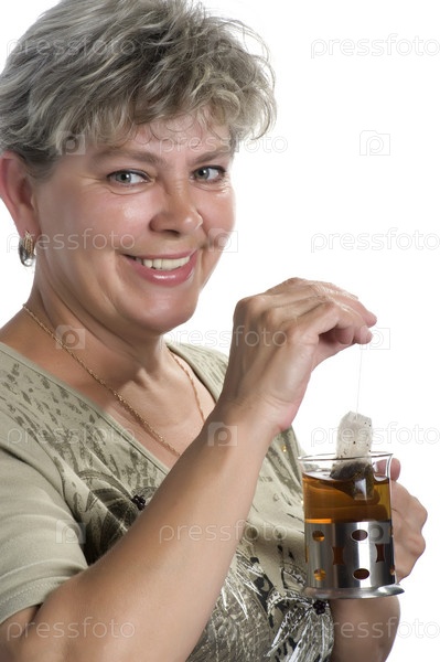 Портрет женщины в годах со стаканом чая