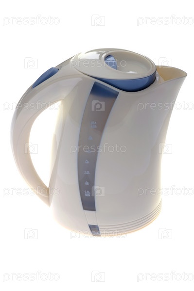 Белый пластиковый чайник на белом фоне