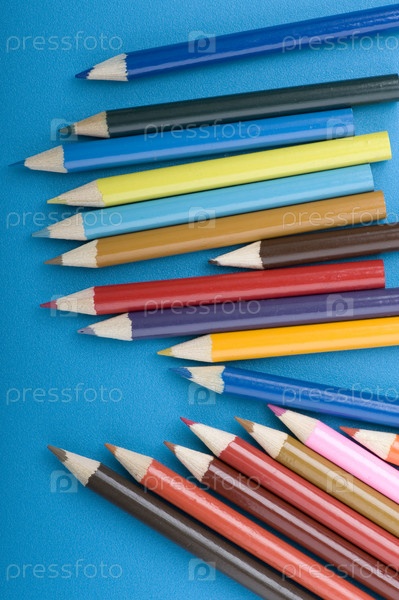 Цветные карандаши на синем фоне крупным планом