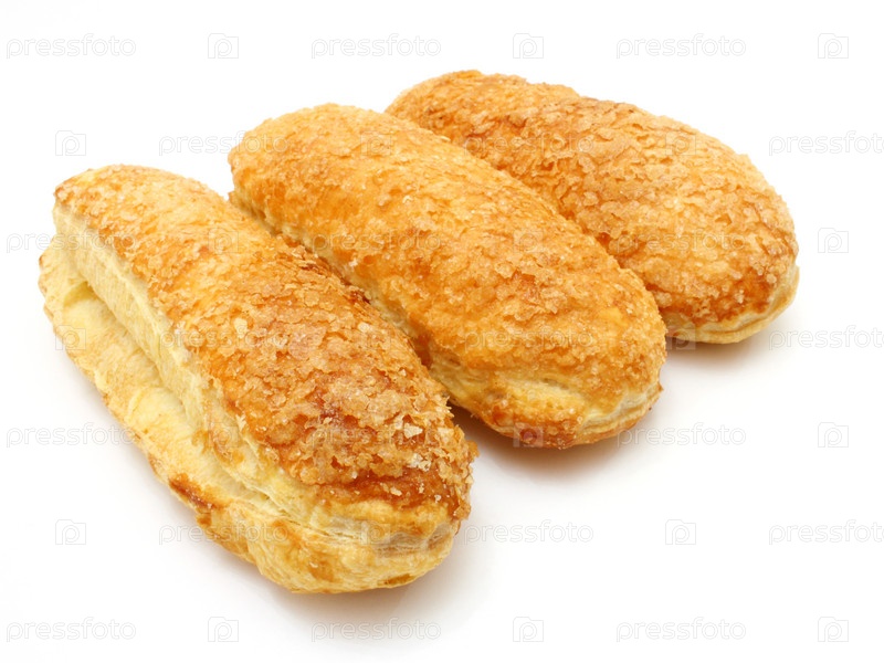 Свежие слоеные булочки с сахаром на белом фоне
