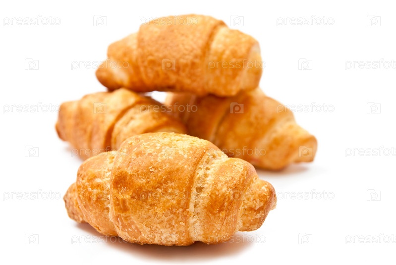 Французские круассаны крупным планом на белом фоне