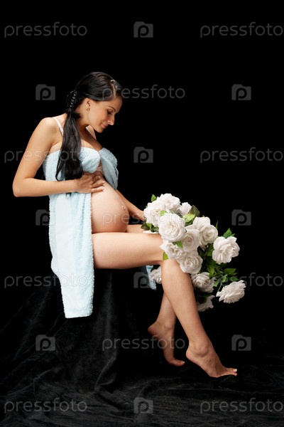 Красота беременной женщины на черном фоне