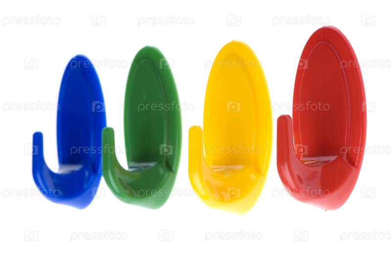 Цветные пластиковые крючки на белом фоне