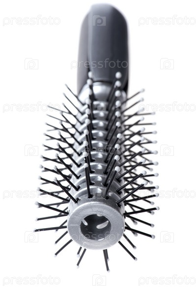 Круглая расческа для укладки волос на белом фоне