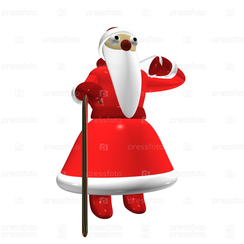 Санта-Клаус с пакетом подарков в 3d на белом фоне