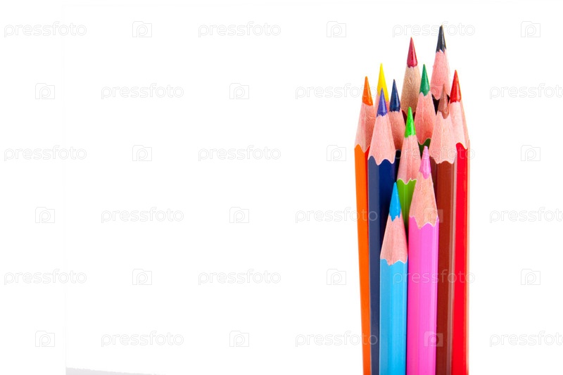 Разноцветные карандаши на белом фоне
