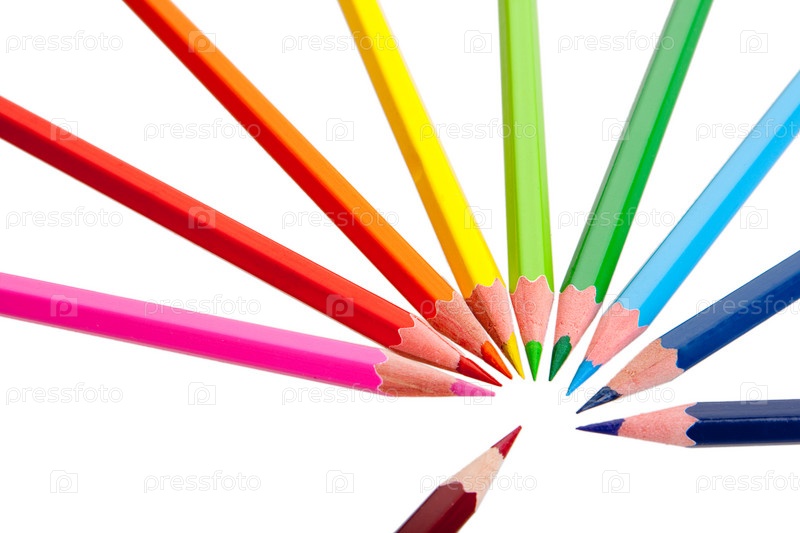 Разноцветные карандаши на белом фоне