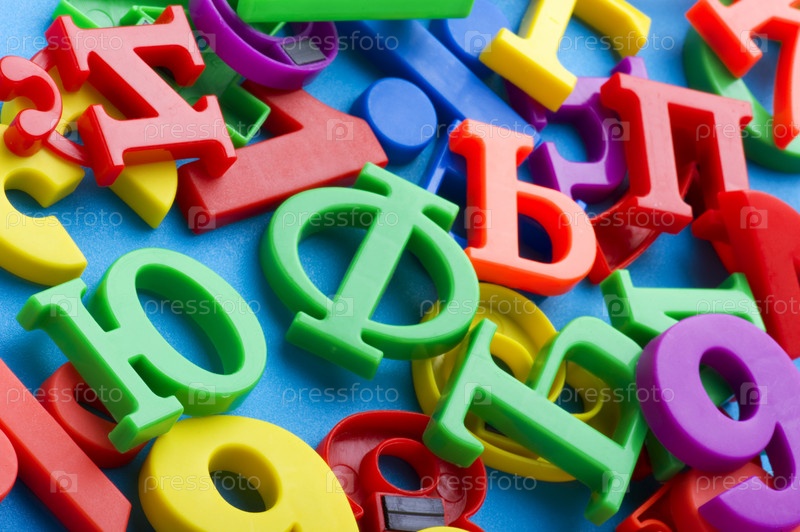 Цветные пластиковые буквы и цифры на синем фоне