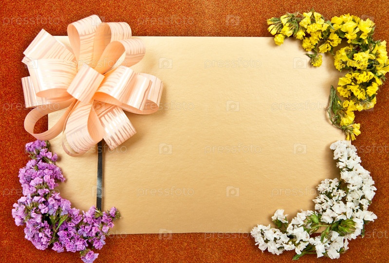 Поздравительная открытка с цветами на коричневом фоне
