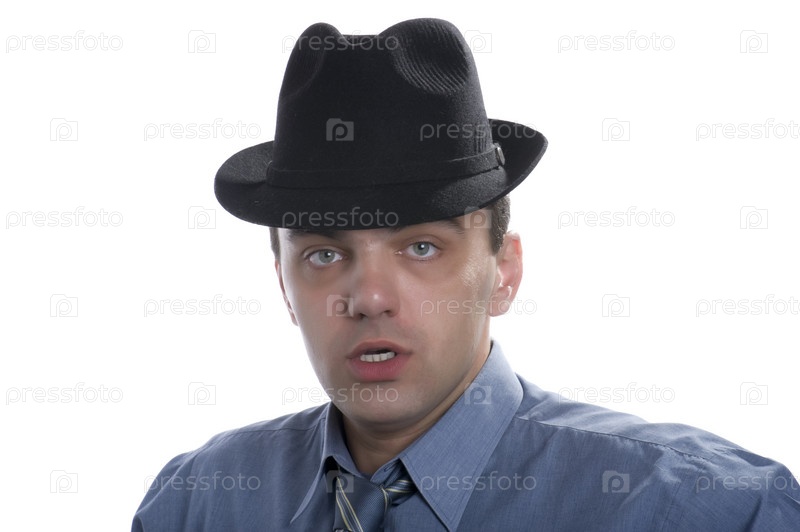 Мужчина в шляпе на белом фоне