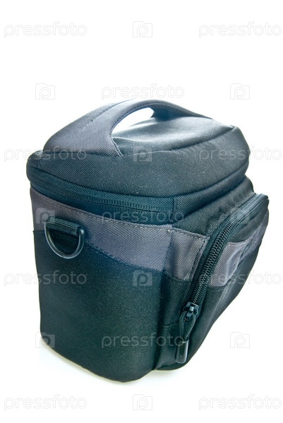 Черный кофр для фотокамеры на белом фоне