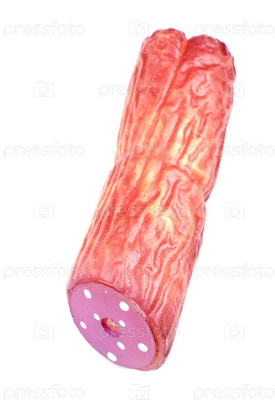 Колбаса на белом фоне - игрушка для собак