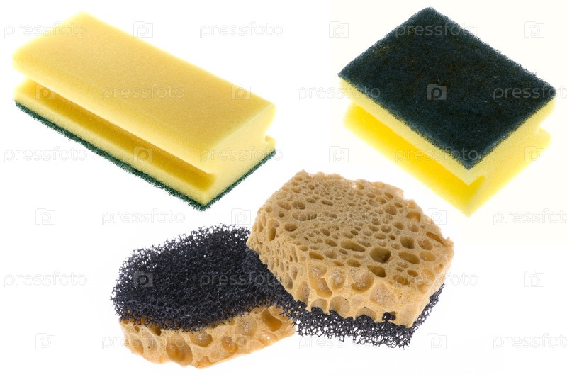 Кухонные губки на белом фоне крупным планом
