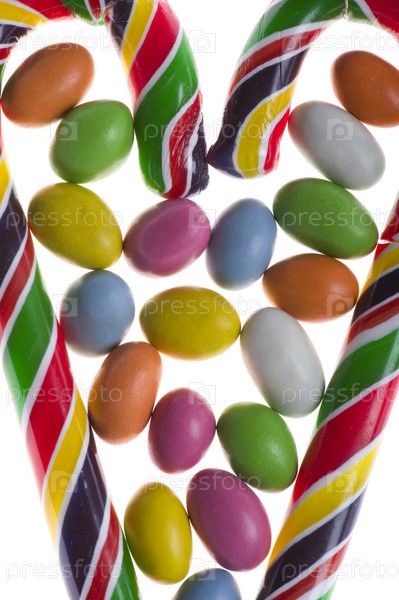 Яркие конфеты крупным планом на белом фоне