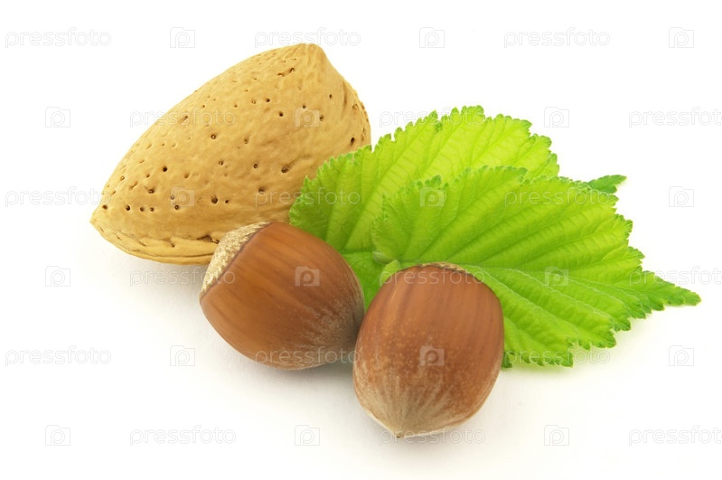 Миндаль и фундук на белом фоне