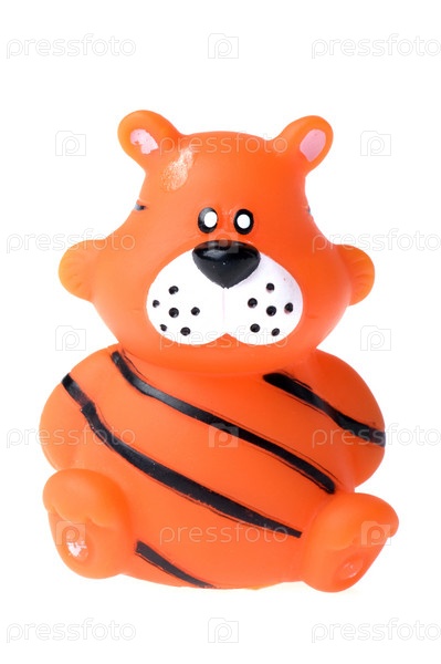 Резиновая игрушка, тигр, на белом фоне