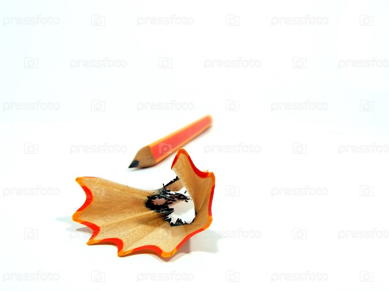 Подточенный карандаш на белом фоне