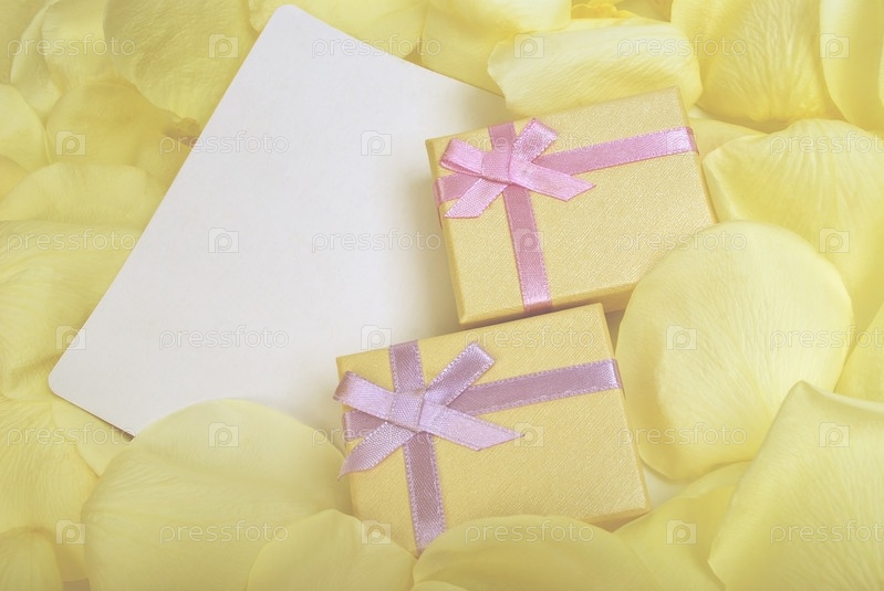 Подарочные коробки и открытка в лепестках роз
