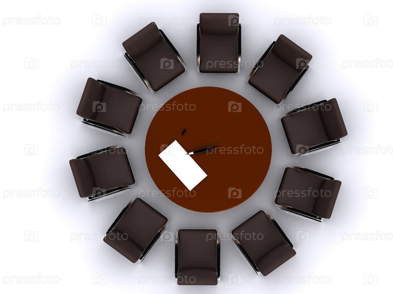 Кресла вокруг стола и блокнот с ручкой на белом фоне