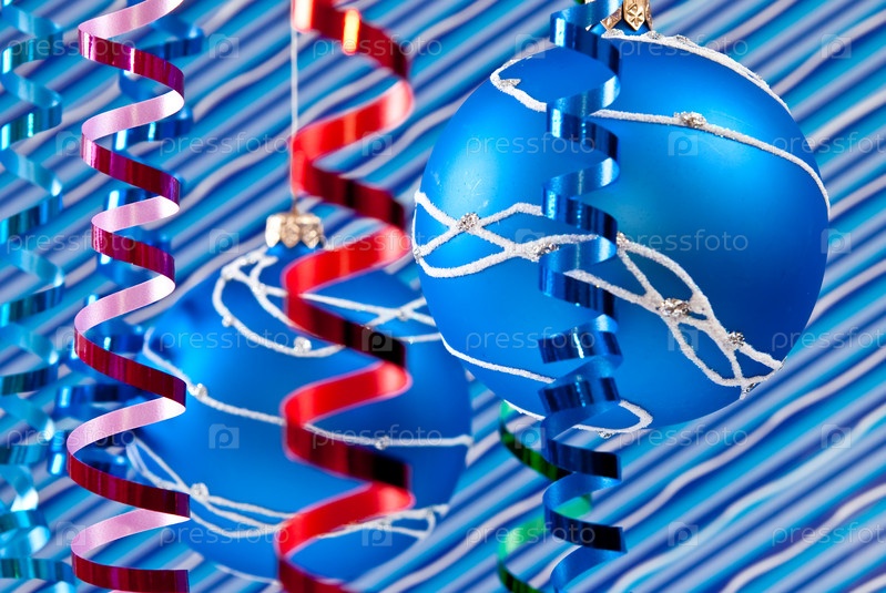 Красивые елочные украшения на синем фоне