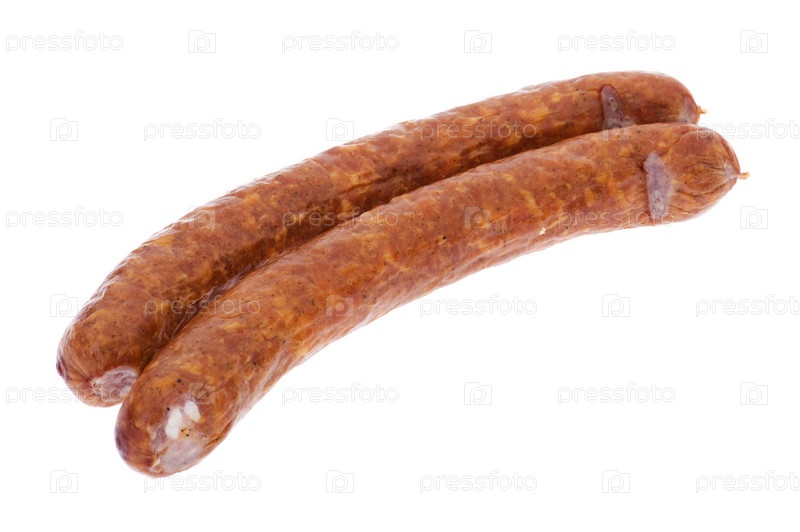 Копченая колбаса на белом фоне