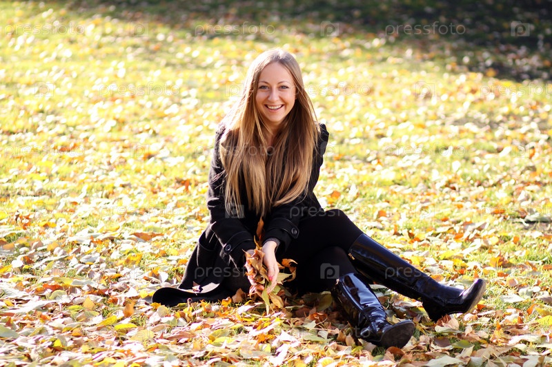 Красивая молодая женщина в осеннем парке