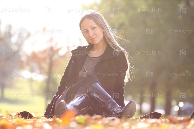 Красивая молодая женщина в осеннем парке