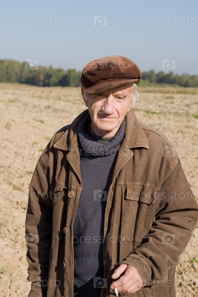 Дедушка с сигаретой на поле