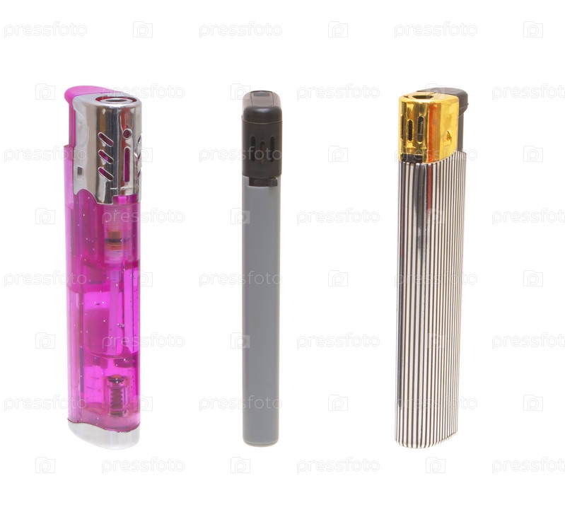 Различные зажигалки на белом фоне