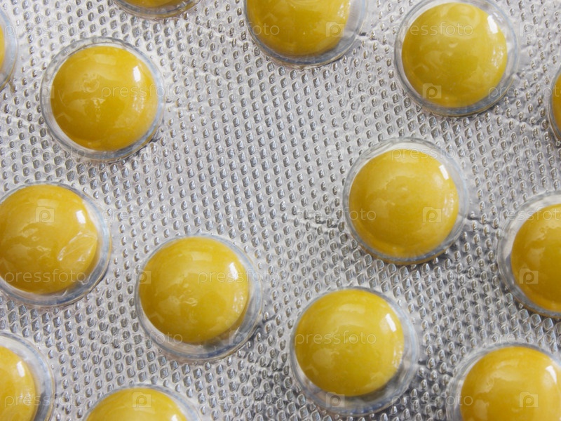 Пластина с желтыми таблетками крупным планом
