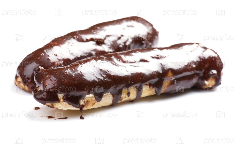 Эклеры с шоколадной глазурью на белом фоне