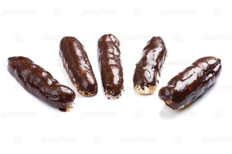 Эклеры с шоколадной глазурью на белом фоне