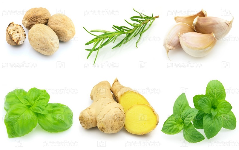 Различные специи на белом фоне