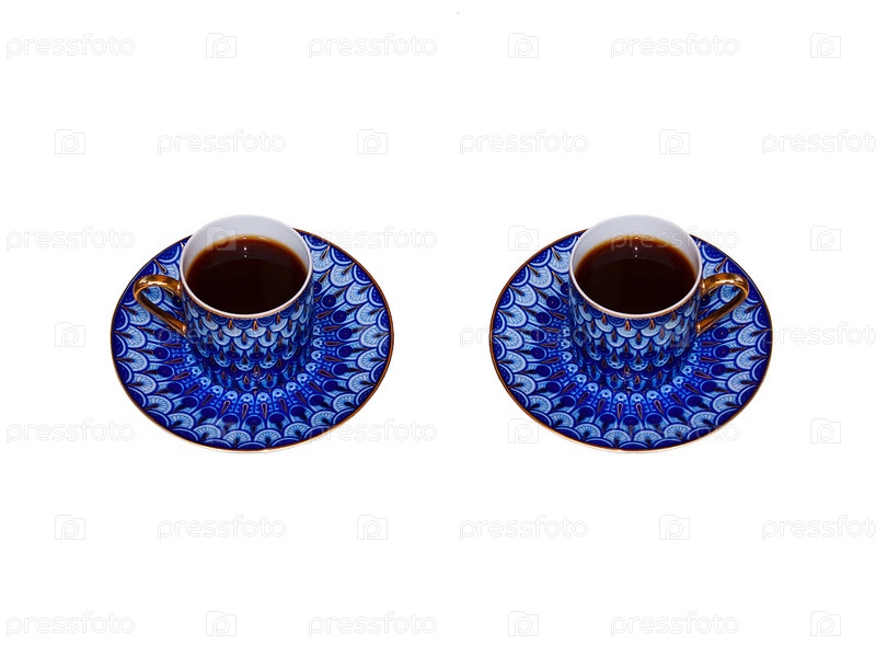 Две фарфоровые чашки с кофе на белом фоне