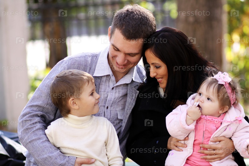 Молодая пара с детьми в парке