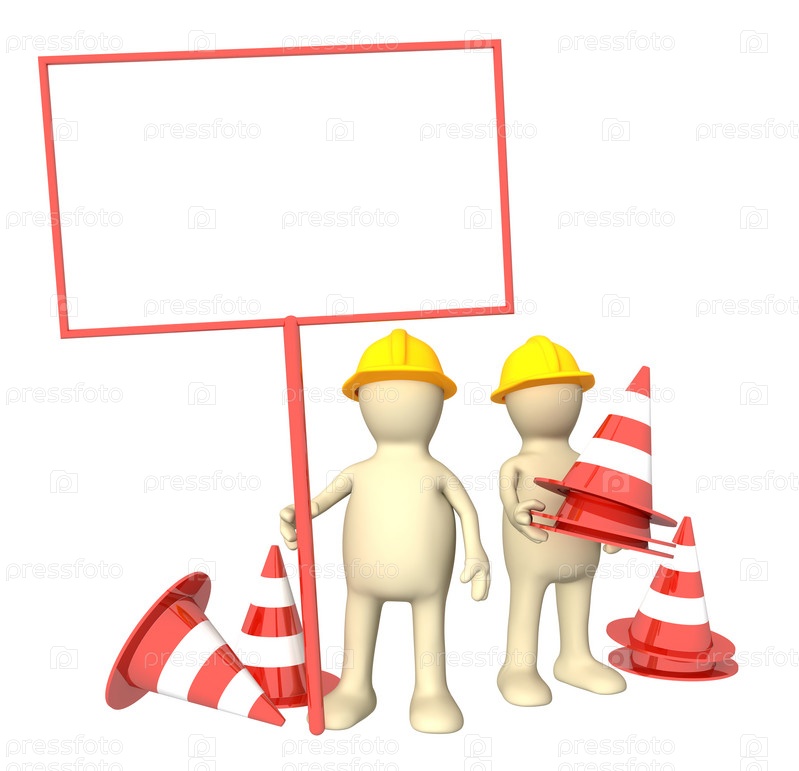Человечки с плакатом и аварийными конусами