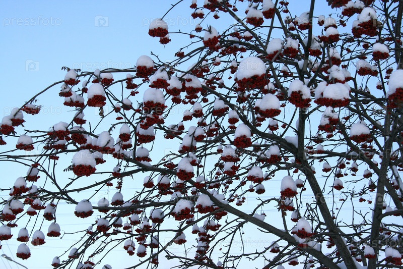 Снежная рябина на фоне неба