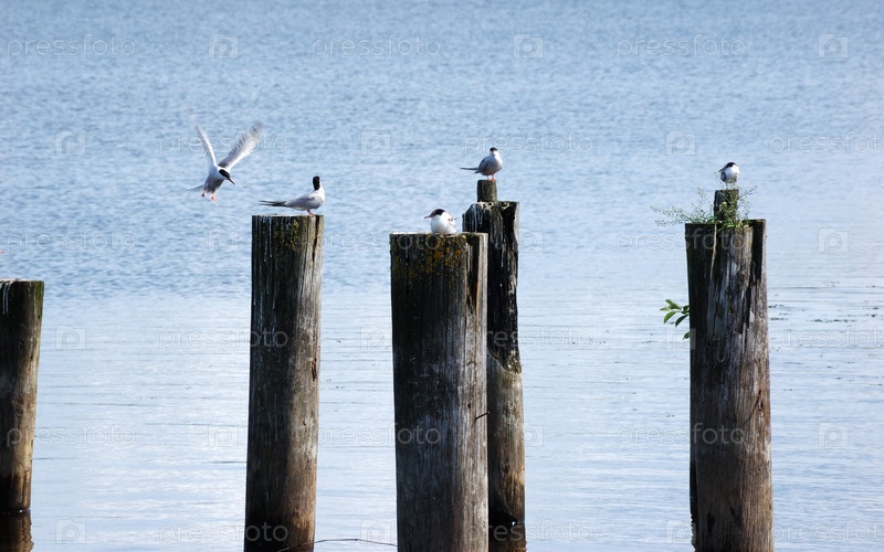 Чайки на деревянных столах