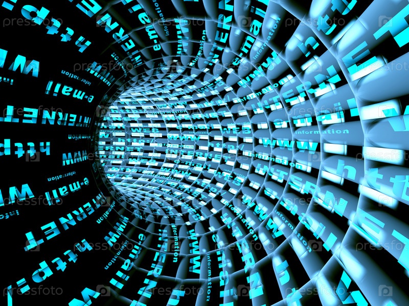 Туннель с терминами, используемыми в Интернете, символизирующий движение информации в сети