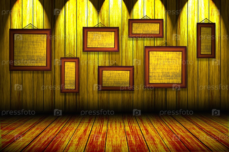Старинная комната с деревянными рамами и направленным светом