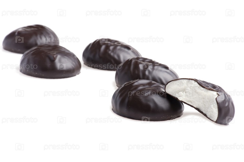 Зефир в шоколаде на белом фоне