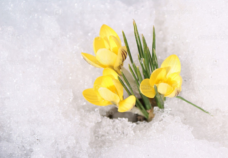 Желтые крокусы на фоне снега