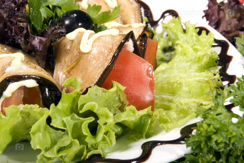 Блюдо из фаршированных баклажанных роллов
