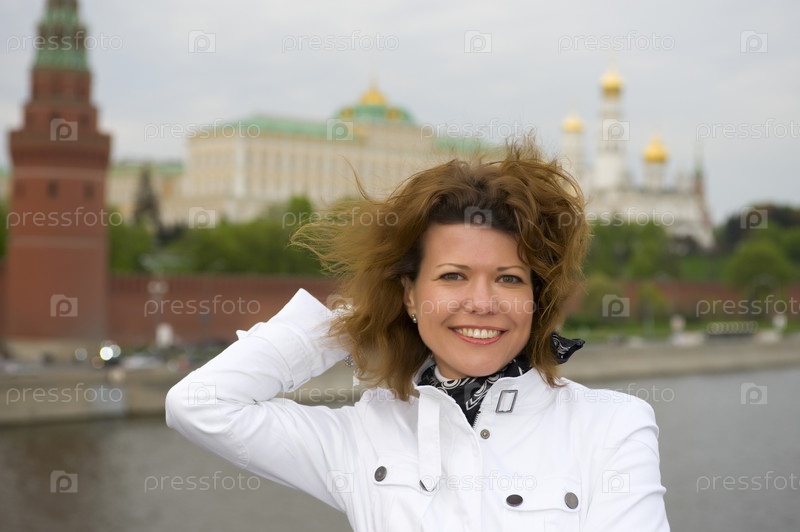 Женщина на фоне Московского Кремля