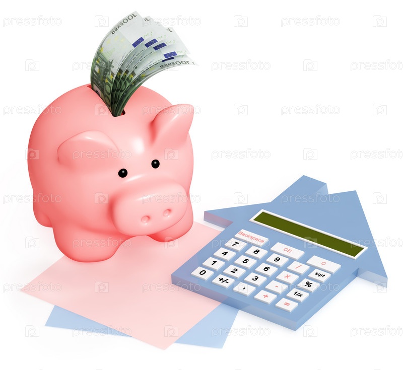 Калькулятор и копилка на белом фоне