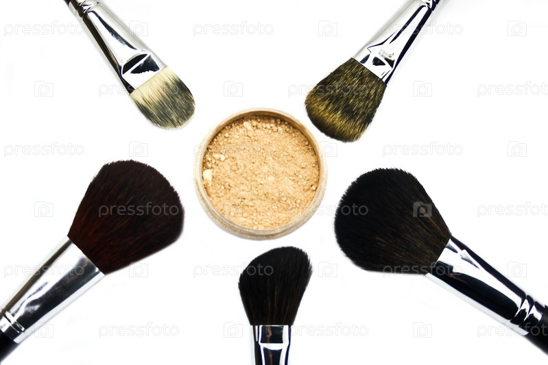 Кисти и порошок изолированы на белом